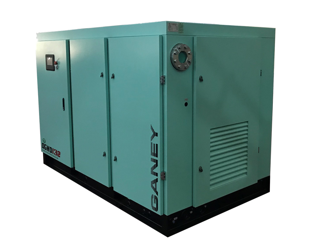 之水無須特殊處理,符合環(huán)保要求。由于水的作用,其壓縮又是理想的等溫壓縮,構(gòu)成壓縮室的各個機械零部件縫隙利用水膜效果,防止空氣漏氣,所排放的空氣量比干式螺桿一次壓縮多25%