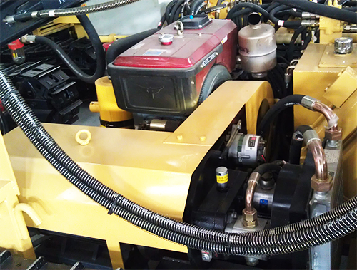 KG910C/YC910C型露天潛孔鉆車采用電動機和柴油機聯(lián)合驅(qū)動液壓泵為液壓系統(tǒng)提供動力。電動機和柴油機分開交錯使用,在無外接電源時使用柴油機,方便用戶進行較長距離移動和轉(zhuǎn)場;在有電源情況下使用電動機,具有安全環(huán)保,低噪聲,使用成本低的特點。