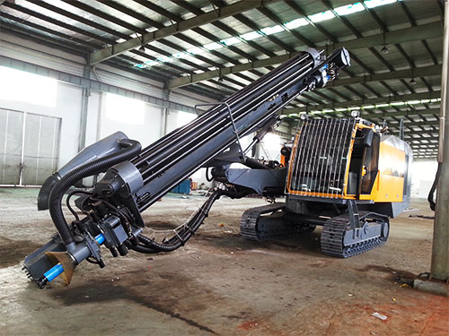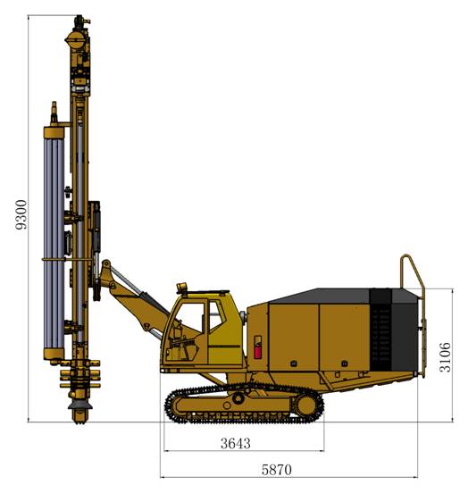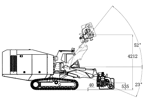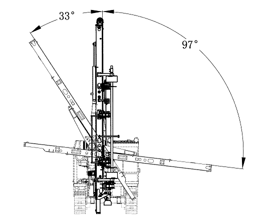 3. 滑架擺角采用經(jīng)過優(yōu)化的變幅機構(gòu),總擺角達130°(右97°,左33°),無需更換支點可自由完成豎直孔與水平孔的轉(zhuǎn)換;最低水平孔高度550㎜,最高可達4500;
