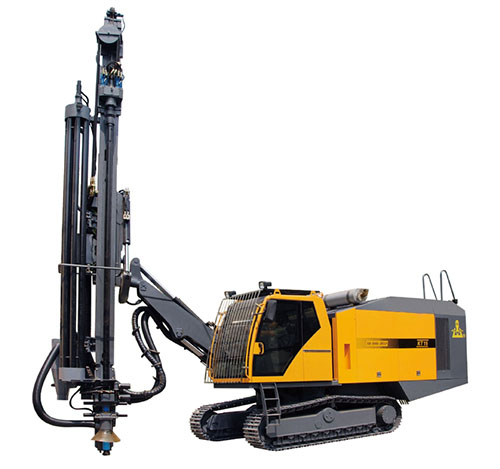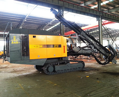 開山"牌KT15型一體式露天潛孔鉆車是本公司在多年開發(fā)生產(chǎn)潛孔鉆車的基礎(chǔ)上,針對大型露天礦山的需求,而精心設(shè)計的新型鑿巖設(shè)備。該鉆車行走、推進、回轉(zhuǎn)及角度調(diào)整等動作均采用液壓驅(qū)動,動力強勁;配用高風壓螺桿機頭及高風壓氣動沖擊器,鑿巖效率高;配有液壓干式集塵器收集粉塵,減少對環(huán)境的污染;并配有液壓缷桿機構(gòu)拆缷鉆桿、浮動接頭保護鉆桿螺紋、自動接缷桿器減輕勞動強度、空調(diào)駕駛室提供舒適的工作環(huán)境及自動控制防卡閥減少卡鉆機率。鉆車具有整體性好、自動化程度高、鑿巖效果好、環(huán)保節(jié)能、操作方便、機動靈活、行駛安全等特點。