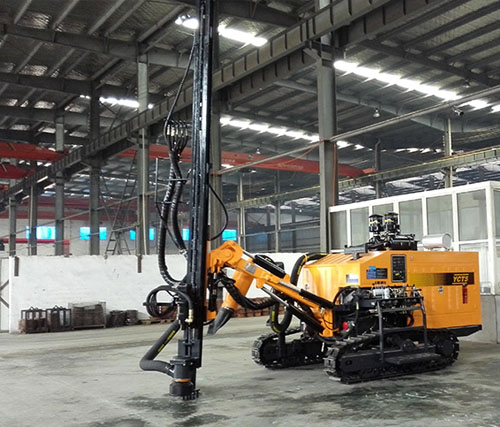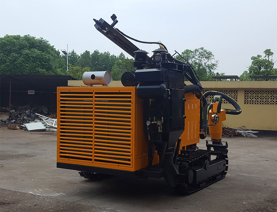 3. The drilling rig is low center of gravity and balanced distribution, with heavy "Four Wheels" and there are 19 ° and automatic leveling device can be independently controlled double locking system, improving the stability of the machine, to adapt to different conditions. The drill rig is equipped with two-speed travel, motor + reducer structure, to achieve the perfect combination of speed and strength.