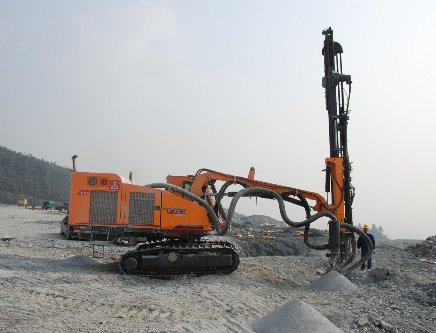 "開山"牌KL511型全液壓露天鉆車配備標(biāo)準(zhǔn)45/51毫米直徑釬桿,可鉆鑿76-127毫米的垂直、傾斜及水平炮孔。廣泛應(yīng)用于路塹開挖,管道敷設(shè)和基礎(chǔ)工程以及露天礦山的鉆孔作業(yè)。